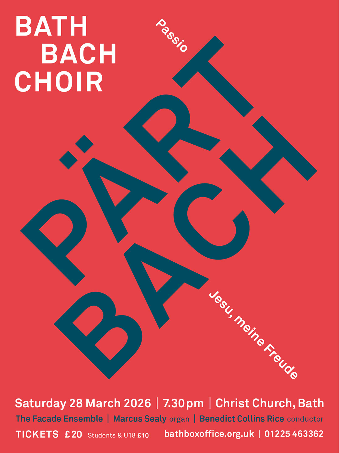Joining Bath Bach Choir under Christ Church’s magnificently domed chancel will be the singers and instrumentalists (violin, oboe, bassoon, cello) of The Facade Ensemble, a chamber group that specialises in bringing 20th-century music to the forefront of today’s listening experiences.